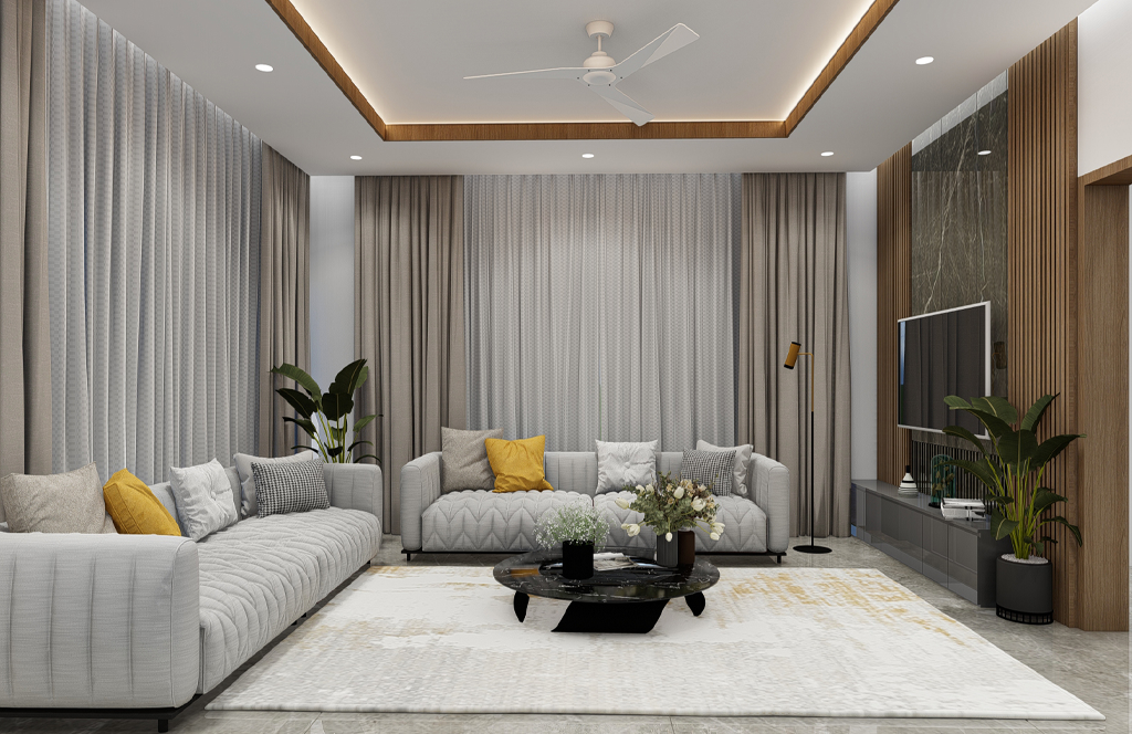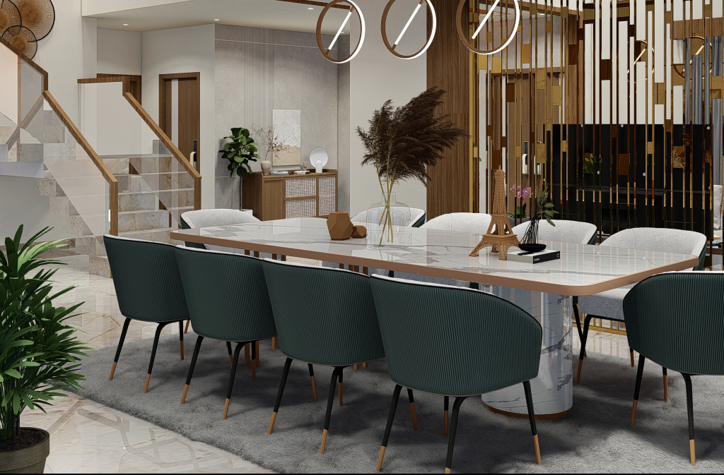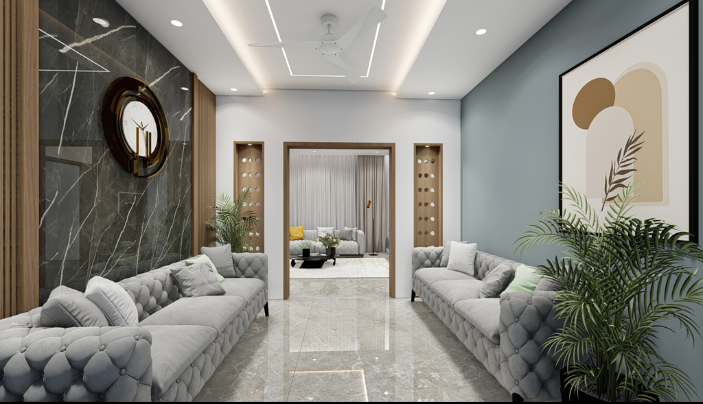 Interior design creates beautiful, functional houses by enhancing space with color, furniture, lighting, and arrangement.